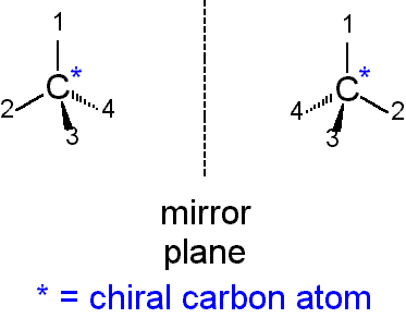 Place the 4 molecule in the back of the chiral center and then in a clockwise (r) or counterclockwise (s) direction label the bonds with atoms 1, …. The lack of a plane of symmetry makes the carbon chiral.